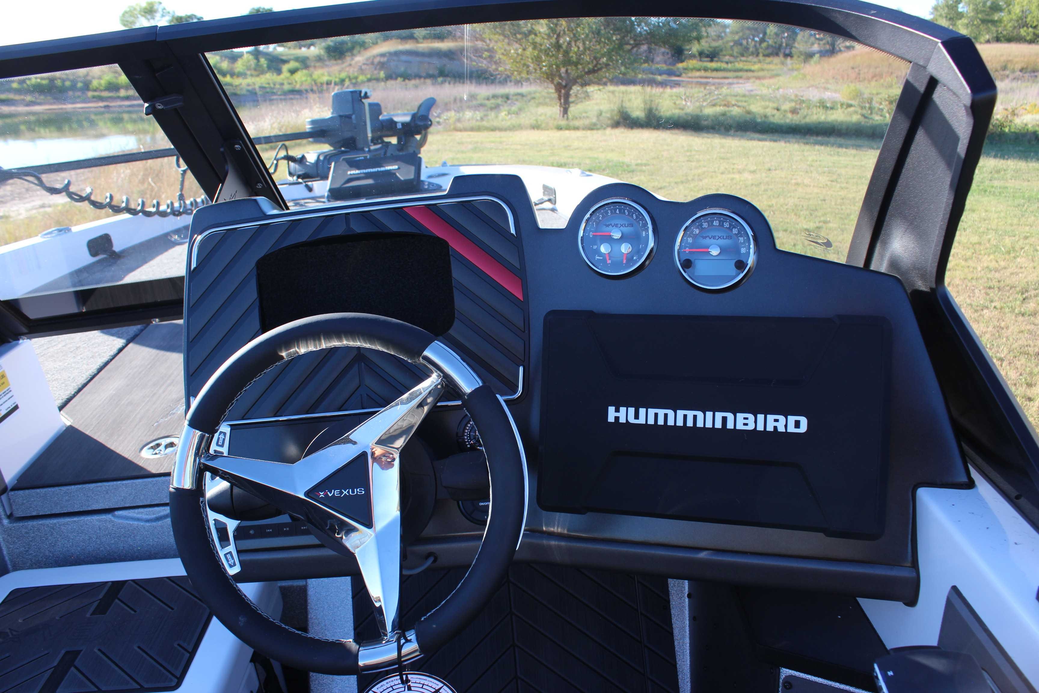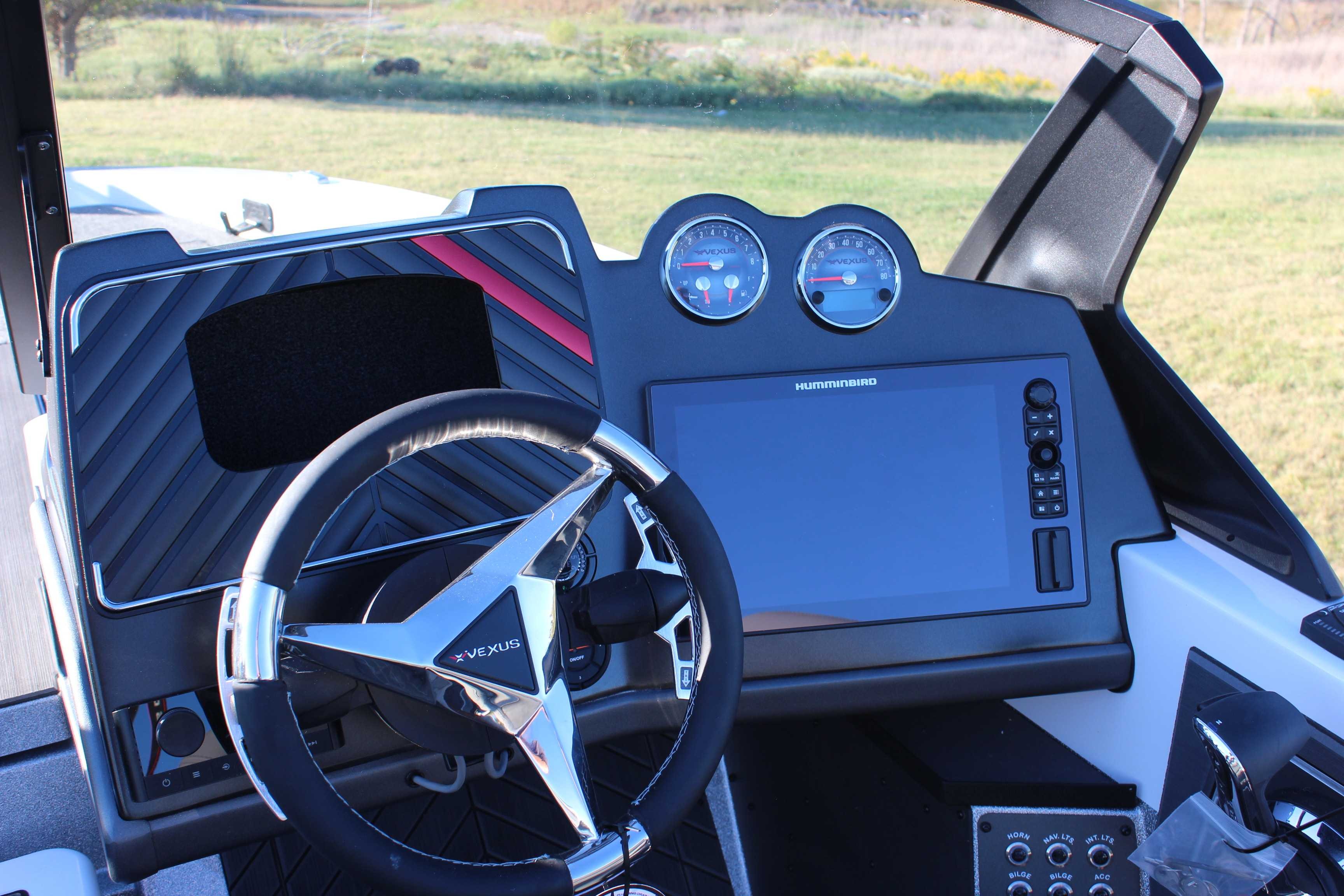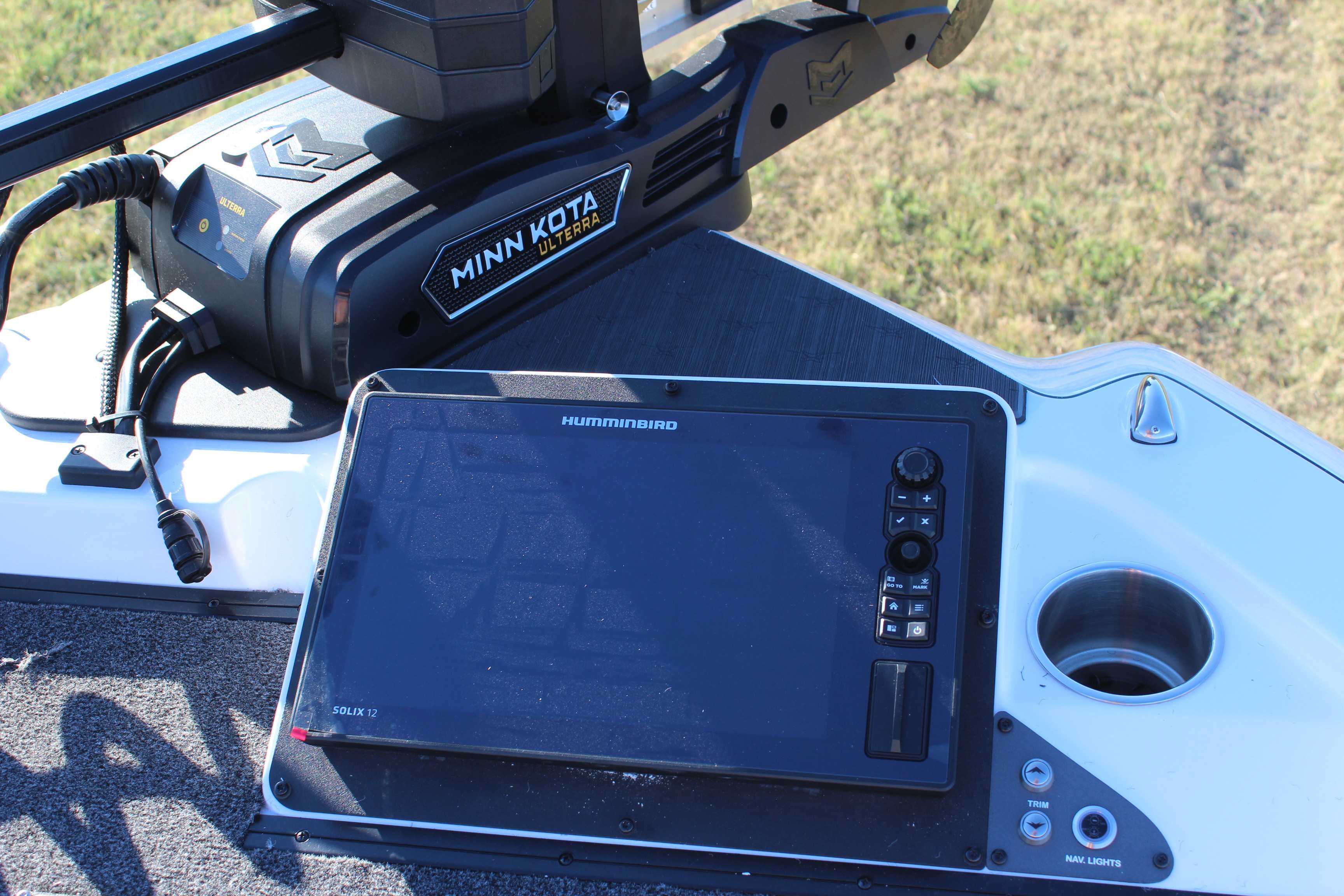 Revolution Package Includes: Humminbird Solix 12 Mega SI+ G3 @ Console, Humminbird Solix 12 Mega SI+ G3 @ Bow, Polk Stereo System, Custom Boat Cover