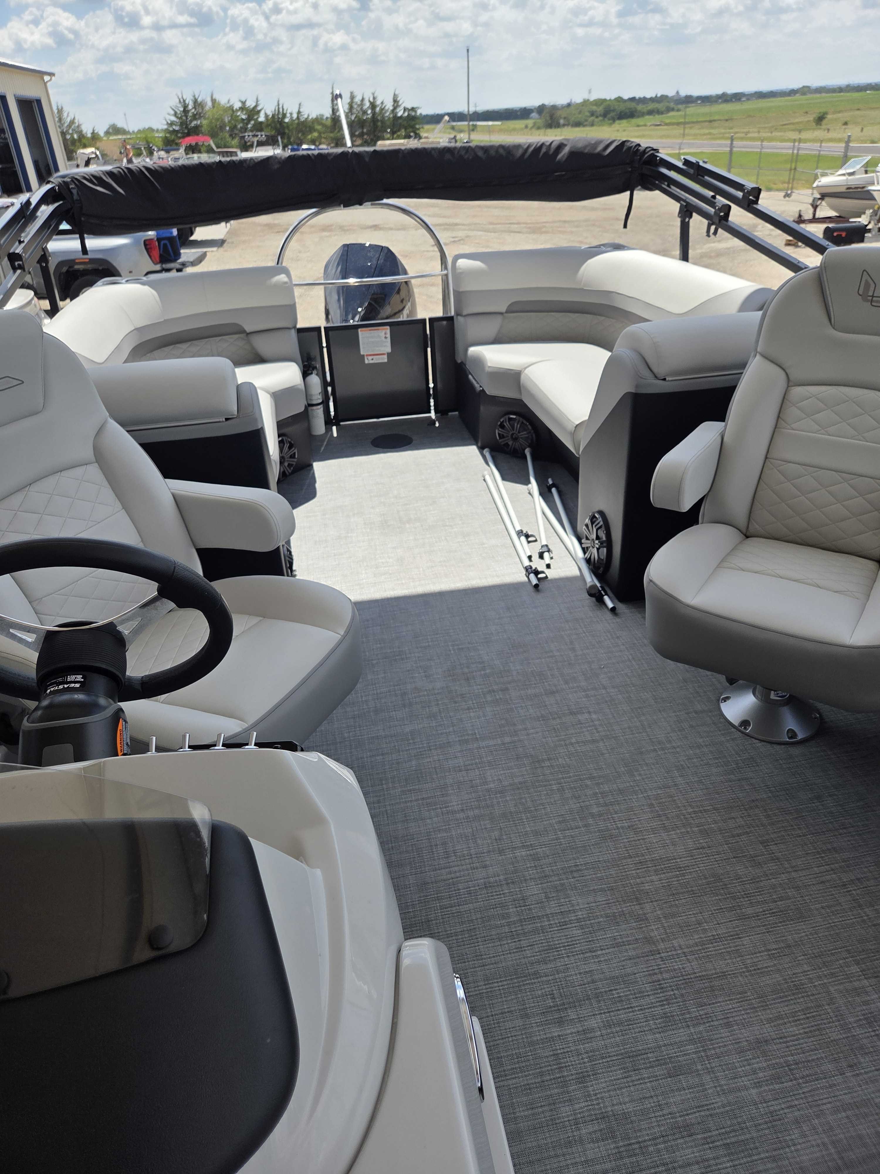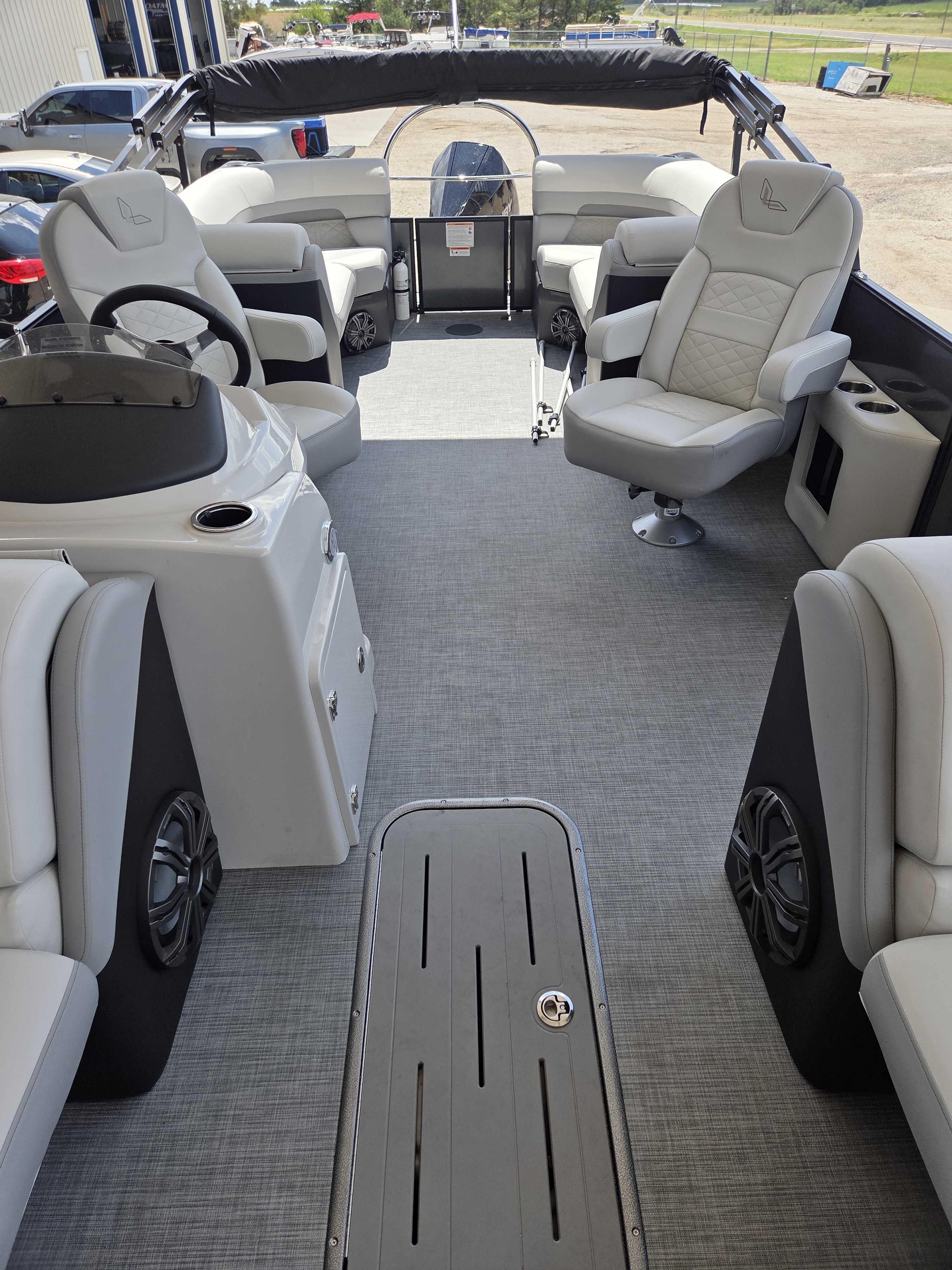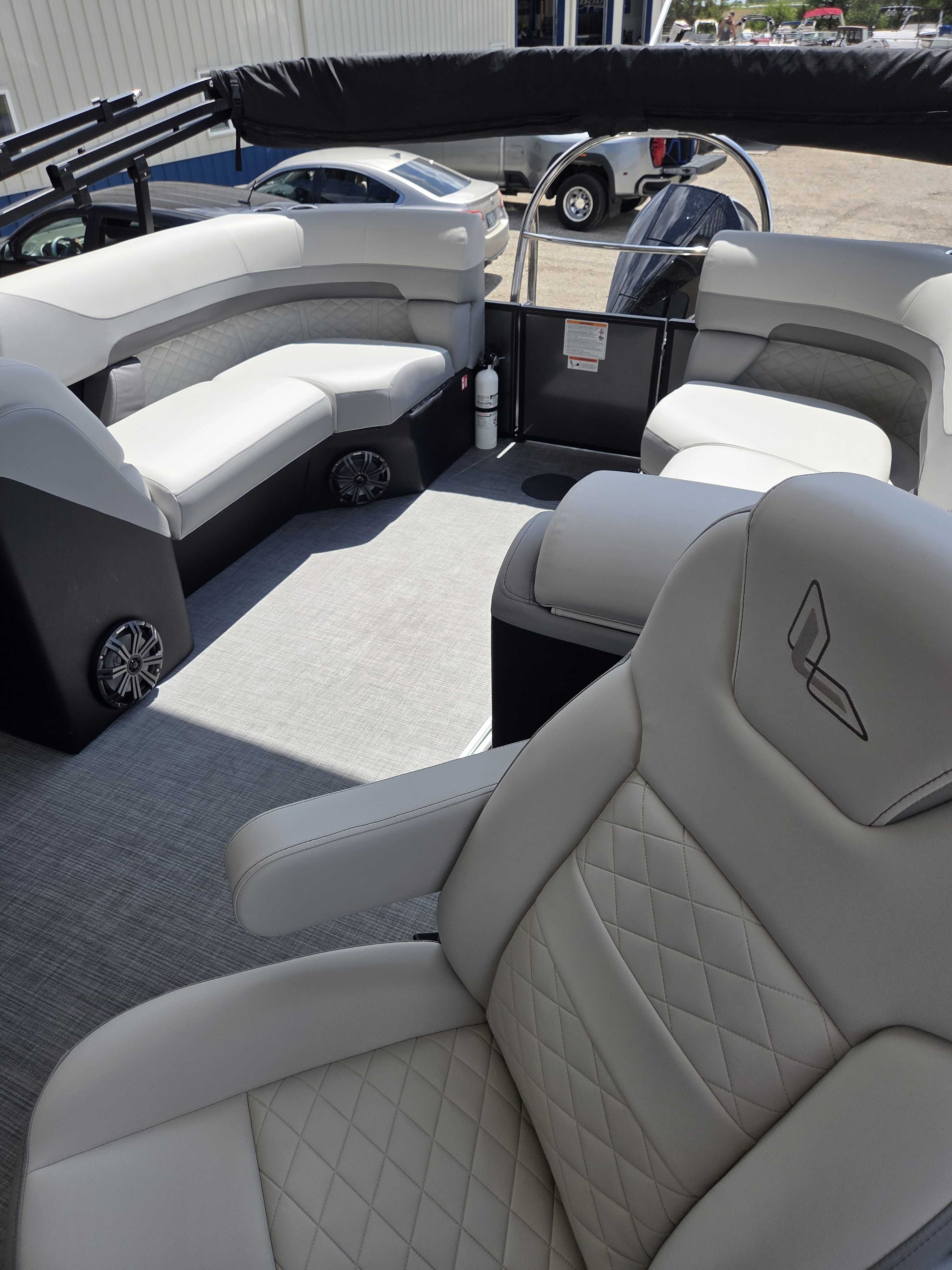 Works Package (Kicker KMC50 Stereo Upgrade, Custom Reclining Helm/Passenger Seat w/Slider, LED Docking Lights-Chrome, Trash Can, Dock Fender Buttons, RGB Interior/RGB Underdeck Lighting) (100-4864)
