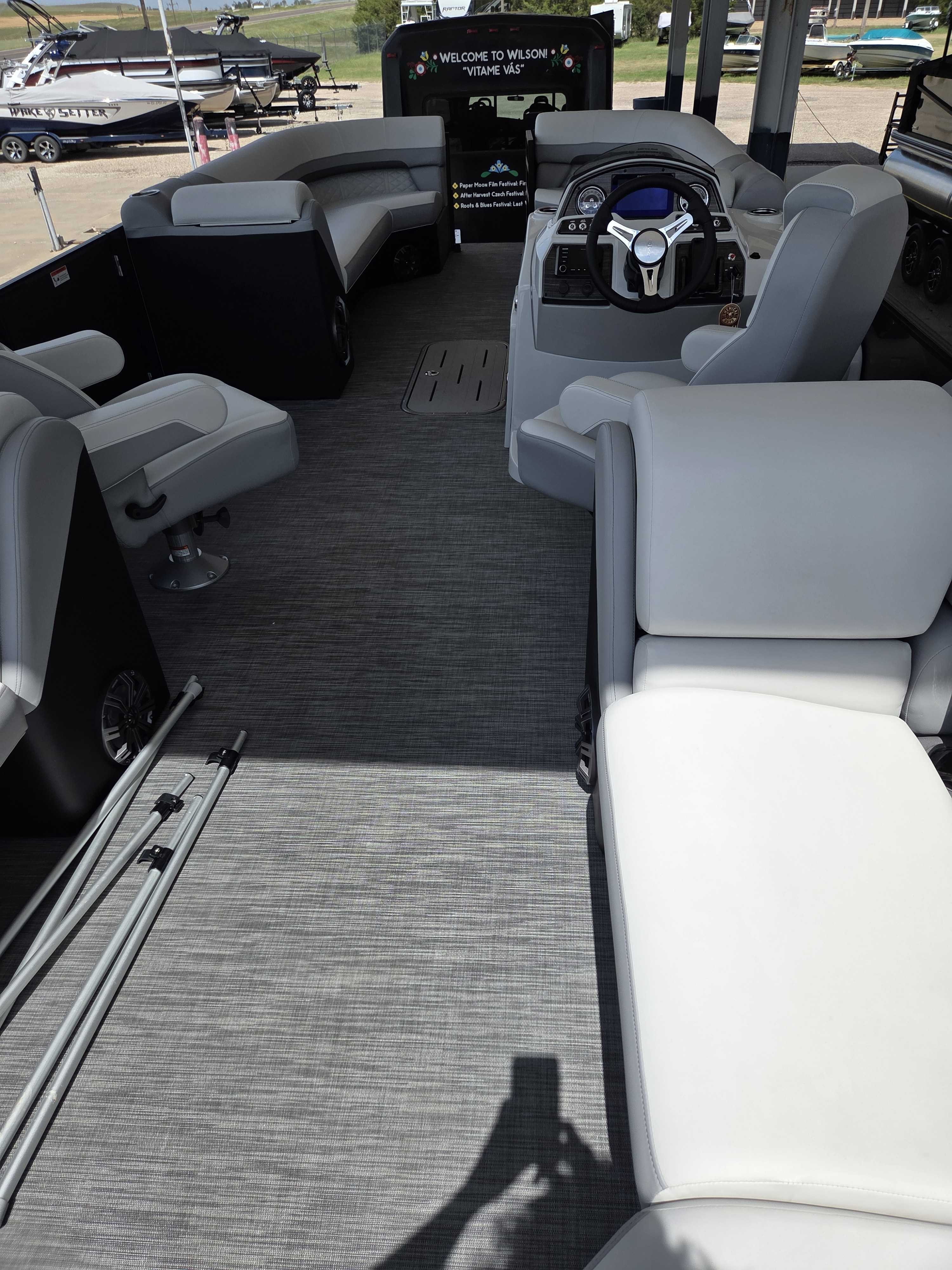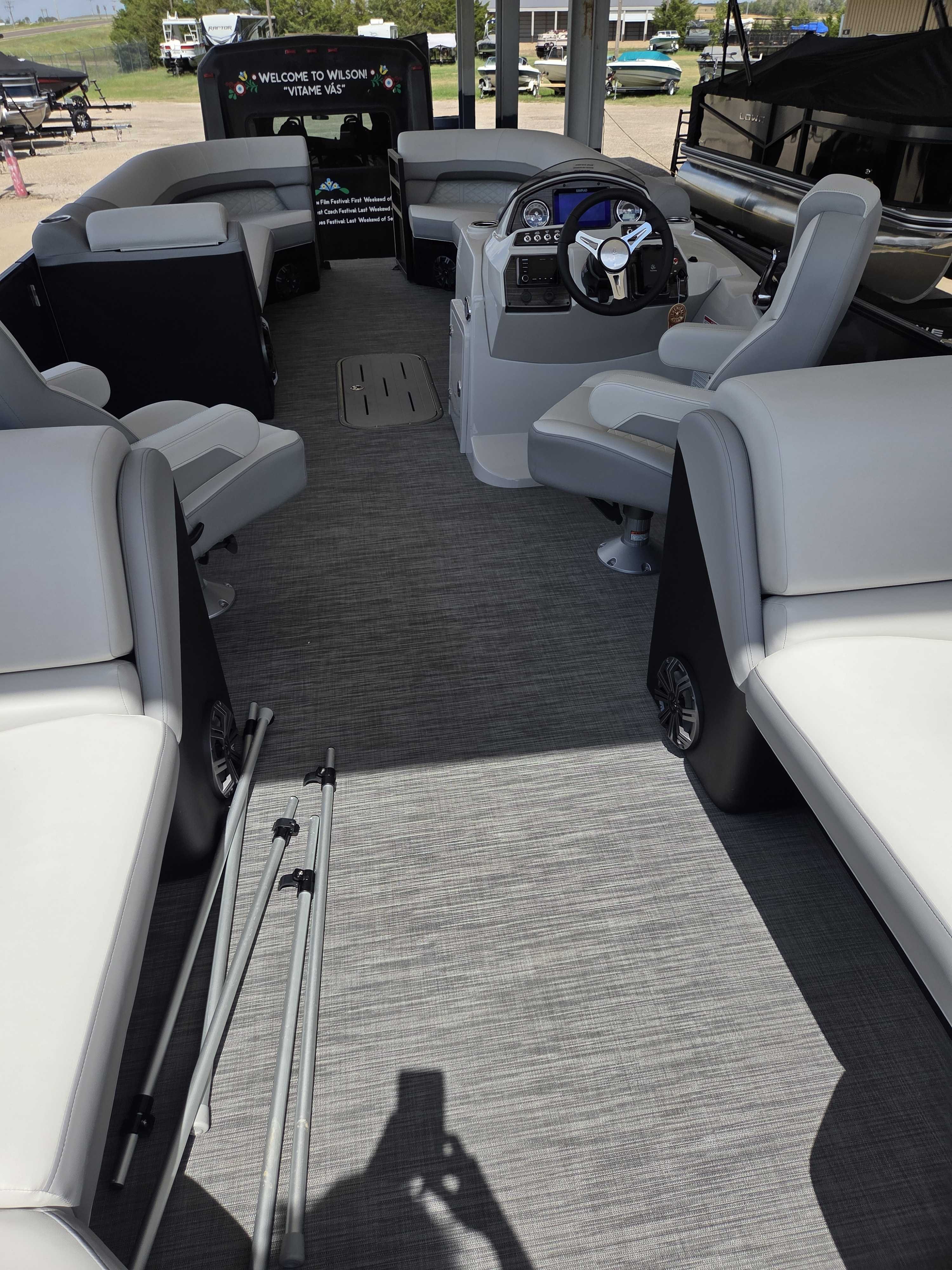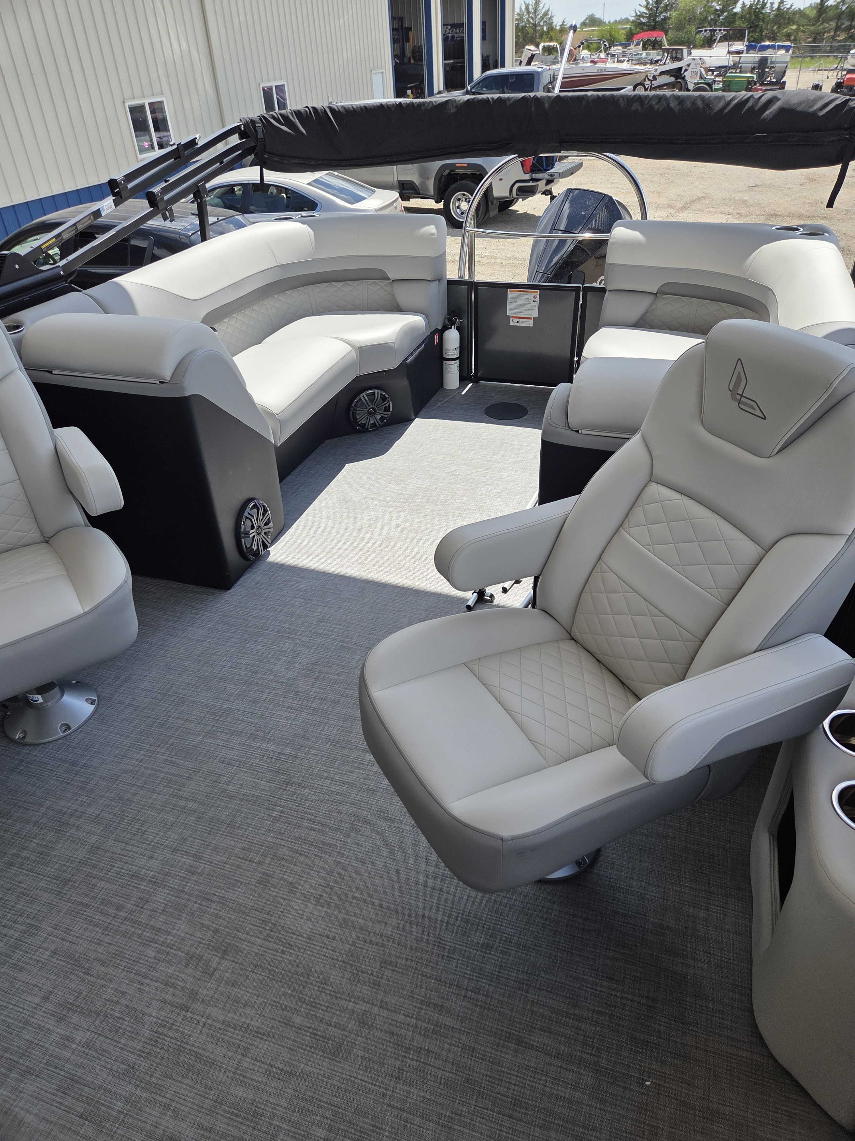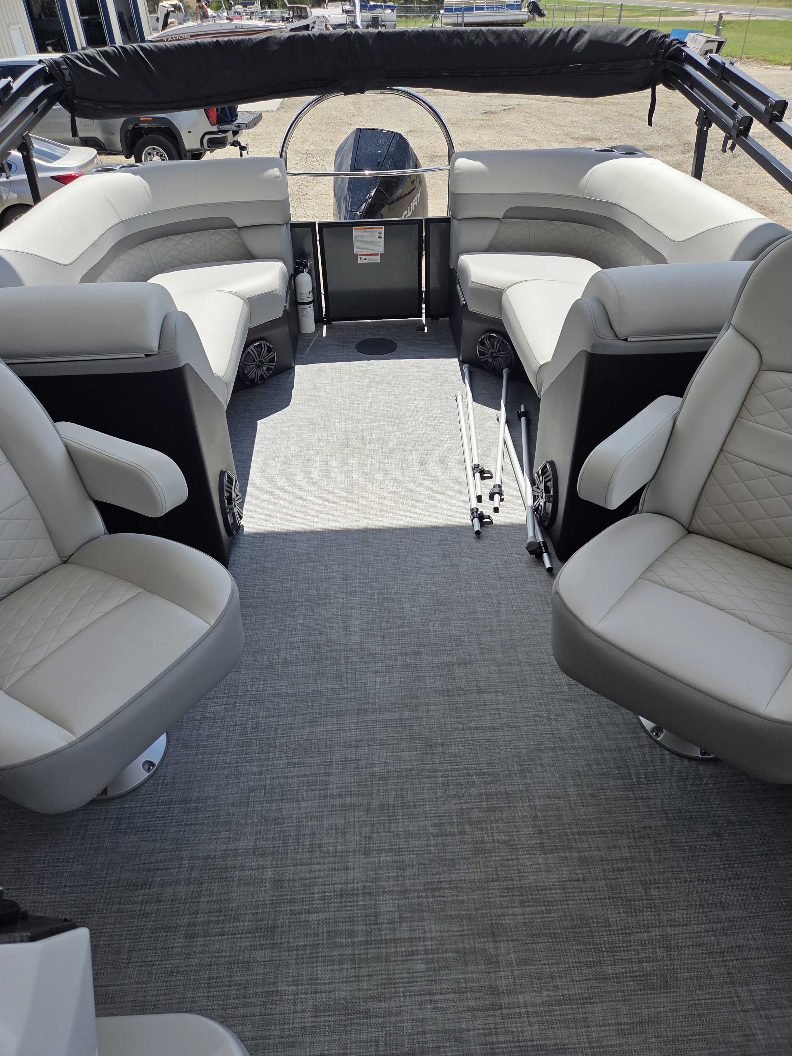 Works Package (Kicker KMC50 Stereo Upgrade, Custom Reclining Helm/Passenger Seat w/Slider, LED Docking Lights-Chrome, Trash Can, Dock Fender Buttons, RGB Interior/RGB Underdeck Lighting) (100-4864)